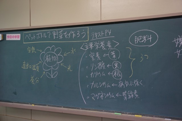 3年生の技術では、「ペットボトルで野菜を育てよう」という課題に取り組みます。今日は、自分で選んだ野菜の種(オクラ、ソラマメ、バジル等)をペットボトルを用いたキットに植え付けました。細かな作業ですが、生徒たちは楽しみながら取り組んでいました。先週に種植えを終えたクラスは、すでに芽が出始めており、生命力の強さを感じさせてくれます。