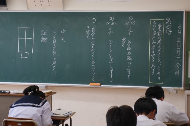 1年生の国語では、「筆者の考え方をもとに自分のものの見方や考え方を広げる」ことを目標に授業が行われていました。生徒たちは、評論文の序論や本論をじっくりと読み、筆者の考え方を理解し、それに対する自分の考えをプリントにまとめました。