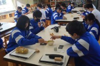 2年生の英語の授業では、買い物のやりとりが英語で行われていました。店員と客の役割...