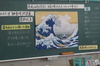 2年生の美術では、葛飾北斎の富嶽三十六景「神奈川沖浪裏」を鑑賞し、表現の工夫につ...