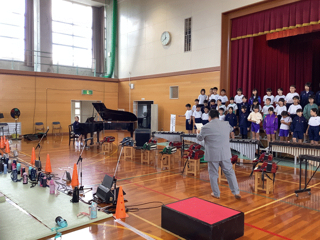 令和9年度に小学校と施設一体型小中一貫校となるため、小学校との交流が本格化しています。
