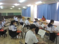 今週から、体育館練習が割り当てられています。今日は1年生が体育館で練習していましたが、体育館の広さに悪戦苦闘していました。