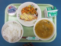 今日の献立は、ごはん、がんもの含め煮、茎わかめのきんぴら、さつま汁でした。今日もおいしくいただきました。