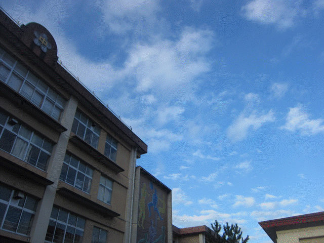 校門横の桜は、ほとんど葉を落としました。これまで落ち葉掃きお疲れ様でした。ありがとう。