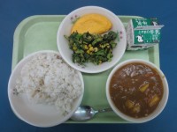 コッペパン、塩こうじのタンドリーチキン、粉吹きいも、坦々春雨スープ、甘夏缶