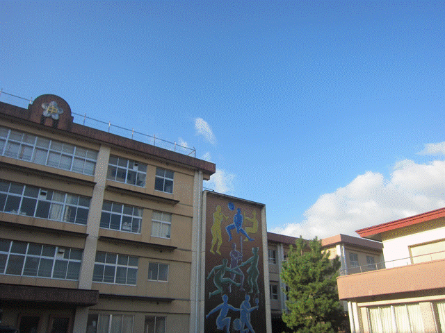 久しぶりの晴れ。朝日が力強く降り注ぎます。気温が低く、吐く息が白くなっています。寒さ対策をして登下校してください。時折強く降っています。上空の雲を見上げると、すごい勢いで流れています。校門横の桜は、すべての葉が落ちました。