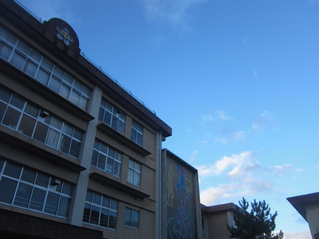 登校の様子。今日も落ち着いて登校しています。慣れてきたせいか、あいさつが少々元気がないように感じました。よい1日は元気なあいさつから始まりますよ。