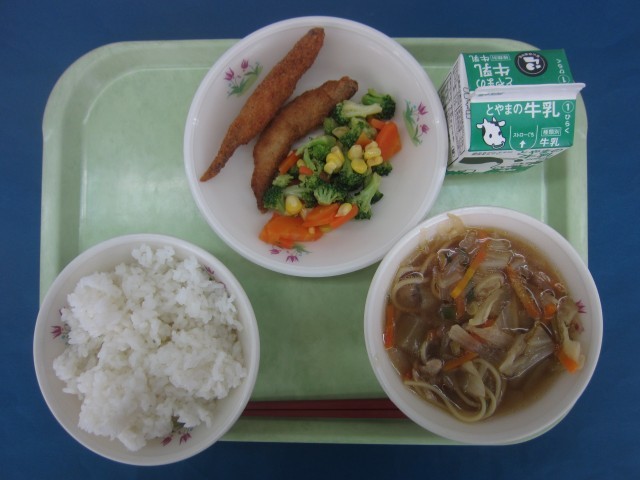五目ラーメンが具だくさんで食べ応えがありました。ししゃものフライはカラッと上がっていてサクサクでした。今日も美味しくいただきました。