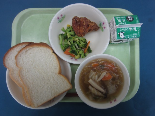 鶏肉の香り揚げの食感がサクサクしていてとても心地よく、パンと一緒に食べるのがとても美味しかったです。調理員さんお揚げの技術に感謝します。