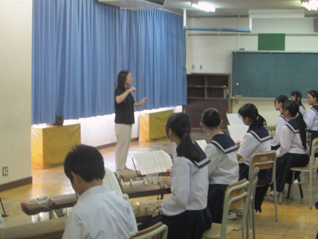 中間評価が終わり、学校祭の準備が本格化してきました。毎年行っている弥栄節の箏演奏の練習も始まりました。毎年お世話になっている水谷先生には、箏の並べ方、演奏の仕方等、基本的なことから教えていただきました。初めてお箏を触った生徒たちは悪戦苦闘していましたが、日に日にうまくなるのです。今年も生徒の頑張りに期待しています。