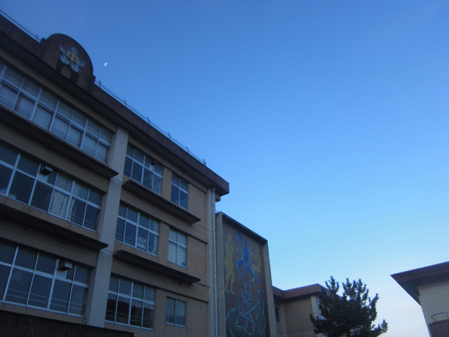 晴れ。力強い朝日が降り注いでいます。大きな挨拶の声が聞こえたので、聞こえた方向を見ると、未来の西中生が、見守り隊の方にこの距離でも聞こえる挨拶をしていて、ほっこりしました。