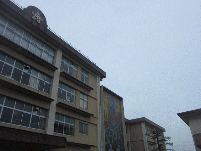 高岡西部中は、授業のほかにも見どころ満載です。正面玄関のモニターには、昨年度の生徒の活躍が流れています。その下には、昨年度の卒業生が制作した「湯ばあば」が出迎えます。にしまる誕生の掲示や、西中賞の作品、美術部の作品などが展示されています。授業からの移動時に是非鑑賞ください。