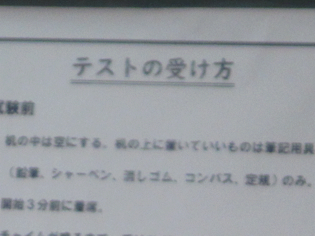 1年生は、中学校に入学してから初めてのテストです。担任の先生からテストの受け方をしっかり聞いて、テストに挑んでいます。