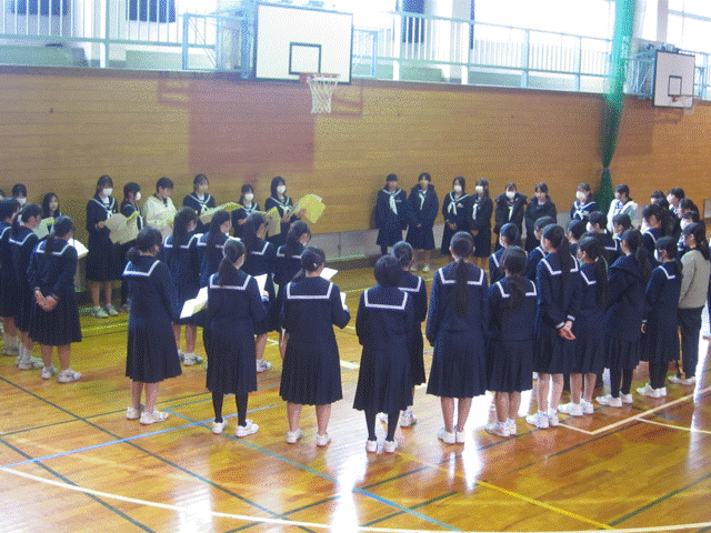 5限目は年度末行事にむけての合唱練習を行いました。全学年合わせたパート練習を行い、3年生が1,2年生に指導を行いました。3年生が指導する最後位の機会ということで、気持ちの入った練習が行われました。これを2年生が引き継ぎ。次回からは2年生が行います。こうやって先輩から後輩へ引き継いでいきます。