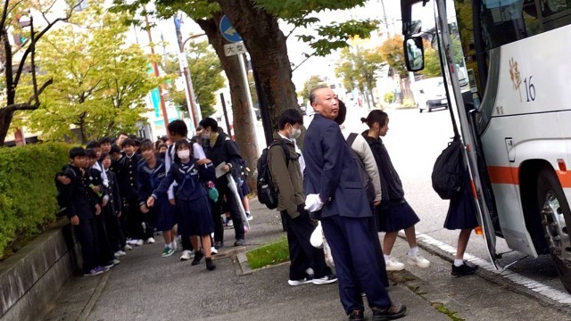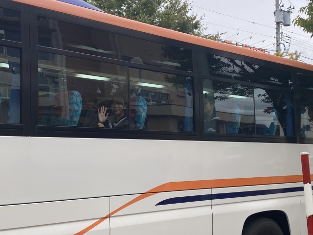 1年生が終日校外学習に出発しました。白川郷を見学し、高山市内で班別学習を行います。ルールを守って正しく行動し、充実した時間にしてください。