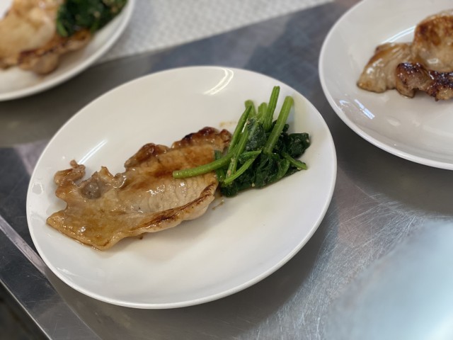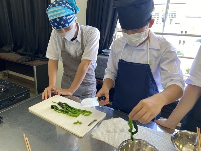 調理実習(2年)~ポークソテー、青菜のごまあえ~