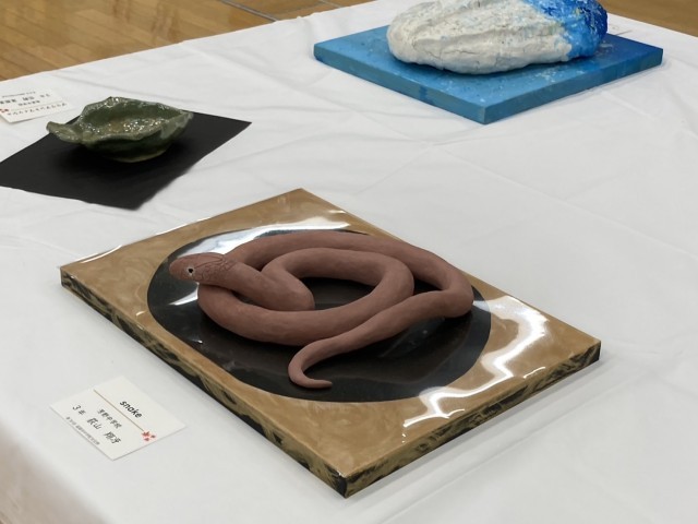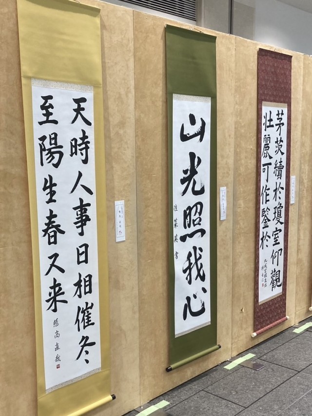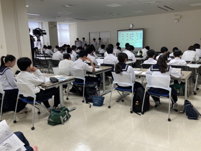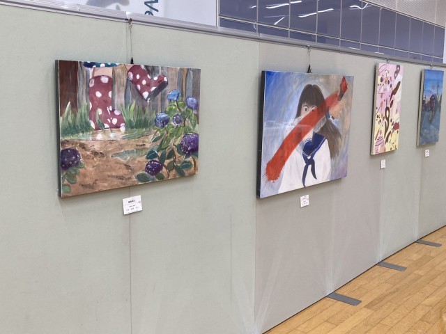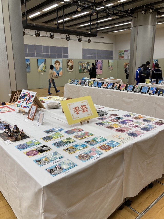 ウイング・ウイング高岡において、第30回高岡市中学校文化祭が開催されています。1階交流スペースには、各学校の美術作品、書道、手芸作品などが展示されており、本校の美術部、家庭部の生徒作品も多数展示されています。5階研修室では理科学習発表会が行われ、本校の科学部の生徒が多数参加し、他校の発表を見学しています。ステージ部門では、13:20より開会式が行われ、意見発表や郷土芸能、吹奏楽演奏などの舞台発表が行われます。