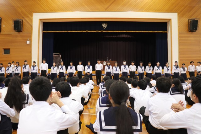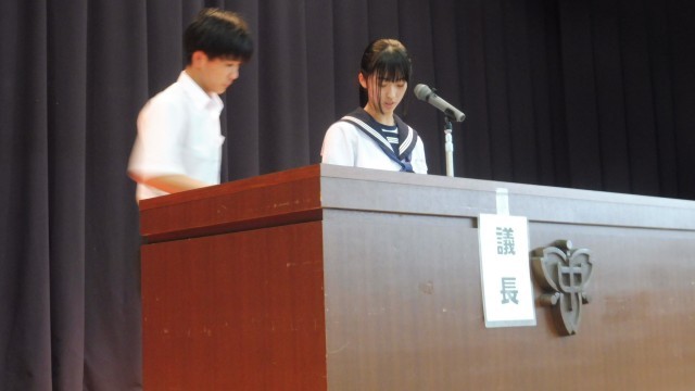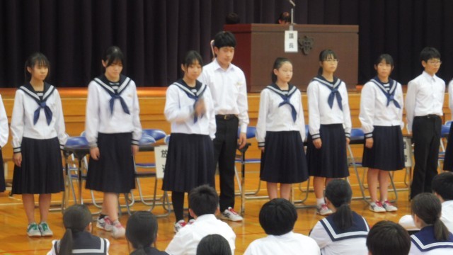 水戸校長先生からは、「個々の違いを認め合うことがスローガン達成の土台となります。松澤生徒会長をみんなで支え、最後にみんながよかったと思えるような生徒会活動にしてほしいと思います」と、激励の言葉をいただきました。