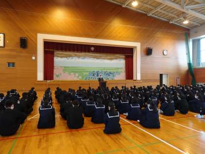 3年生は5限目に明日の私立高校一般入試に向けて事前指導がありました。校長先生から激励の言葉をいただいた後、各受験校に分かれて学年の先生方から説明を受けました。