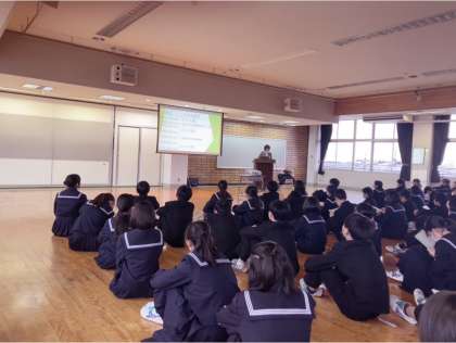 2年生は昨年末より受検に向けてテキスト学習を始めてます。今日は、進路学習の一環として県内の3高校から先生をお呼びして学科やコースについて説明してもらいました。それぞの学科の特徴について理解が深まりました。今後の進路選択の参考にしてほしいと思います。来週も行う予定です。