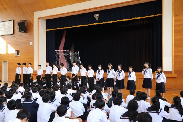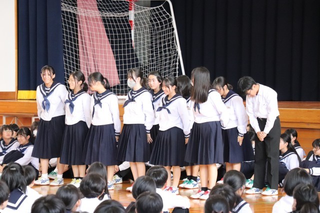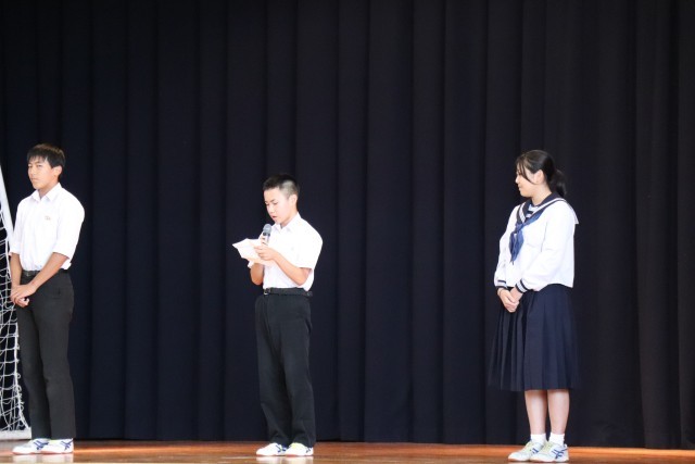 続いて、駅伝部と吹奏楽部の代表である嶋さんと只野さん、さらに10月17日から三重県で行われる全国の陸上競技大会に出場する茅原さんが代表の挨拶をしました。自分の言葉で堂々と話す姿が大変立派でした。堂々と戦ってきてください!