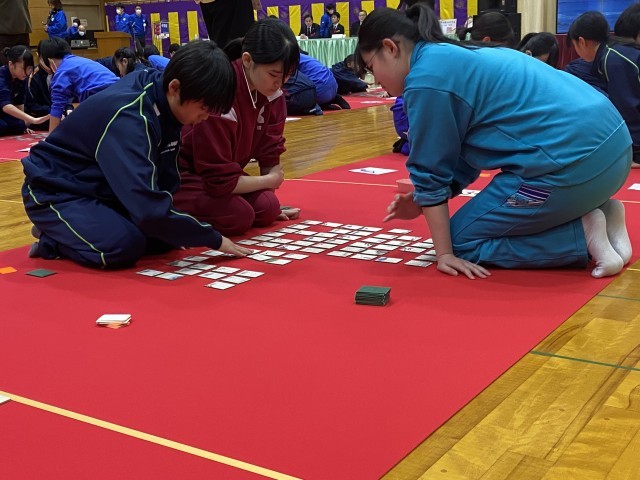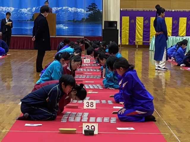 本日、ふくおかUホールにて第46回越中万葉かるた大会が開催されました。本校から1年生5名が出場し、4回戦を戦いました。結果、団体戦で3位入賞、個人戦では、大瀬さんと荒木さんが入賞しました。おめでとうございます㊗️!