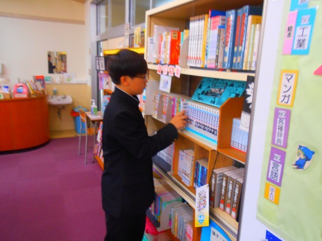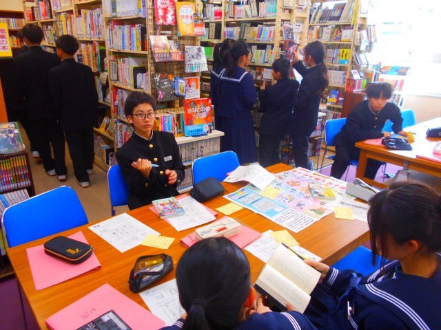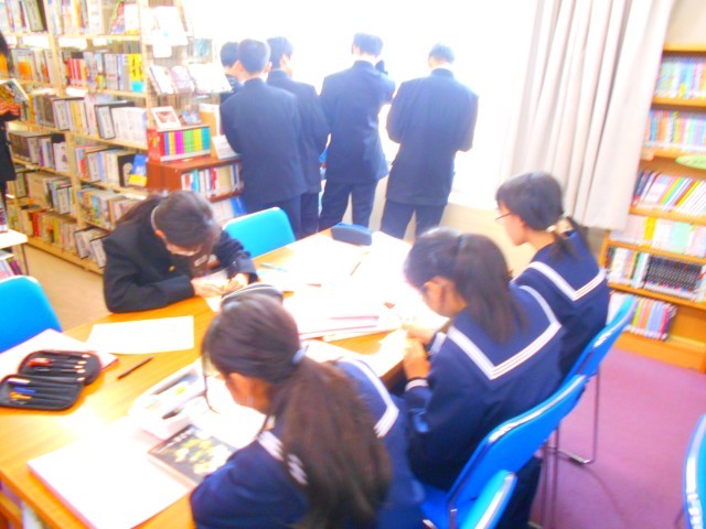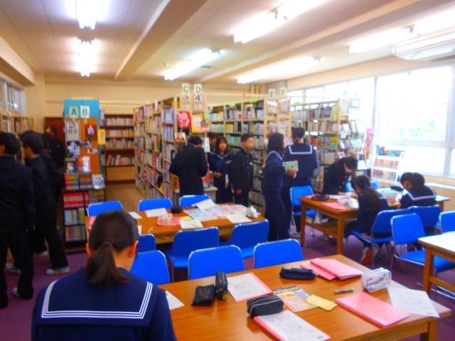 1年生は、図書室の使用についてオリエンテーションを行っていました。図書室はどんな場所かについて、司書さんの説明を受けながら、図書の借り方や返し方を確認していました。図書室は、本を読んだり、調べ学習をしたりするための静かな学習空間です。みんなが気持ちよく利用できるよう、マナーとルールを大切にしてください。