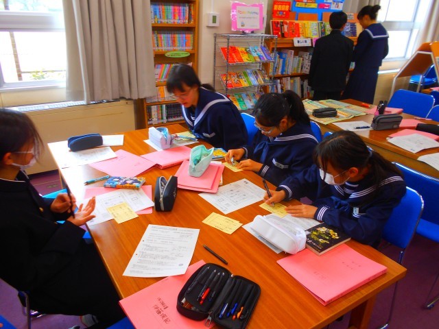 明後日22日に迫った終日校外学習に向けて、1年生は総合の時間に最終確認を行いました。日程や持ち物、班別行動計画などを班ごとに確認し合い、学習への意識を高めていました。有意義な1日になることを祈っています。