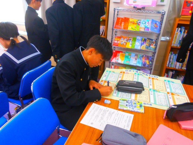 1年生が社会科コンテストを行いました。既習事項から地理25問・歴史25問が出題されました。基本的な事柄や重要語句を覚えるよい機会になったと思います。これからもこつこつ頑張っていきましょうね。