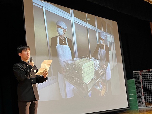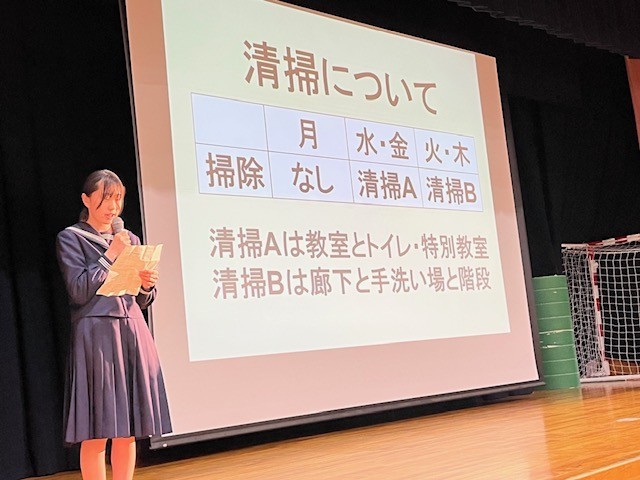 仕方集会がありました。生徒会の生徒たちが、中学校生活の様々な事柄やルールなどを全校生徒に説明しました。1年生はもちろん、2,3年生にとっても、これまでの学校生活について確認できる、よい機会になりましたね。