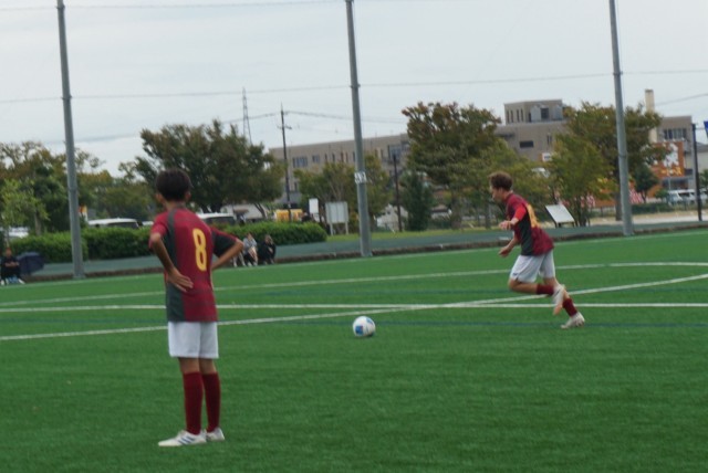 サッカー競技では、第一試合で高岡合同チームに勝利し、第二試合目は射水合同チームとの勝負です。