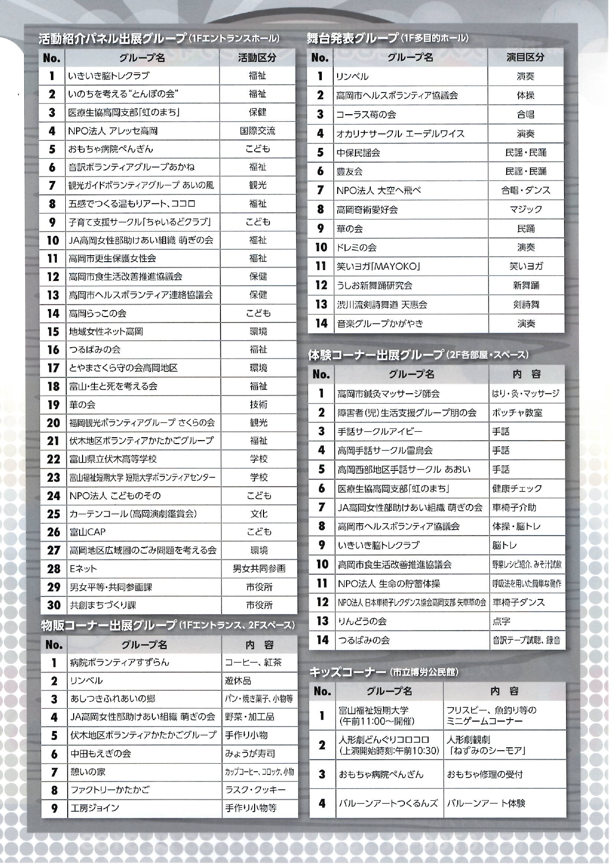 高岡市ボランティアセンターから「ボランティア広場」開催の案内が届きました。
