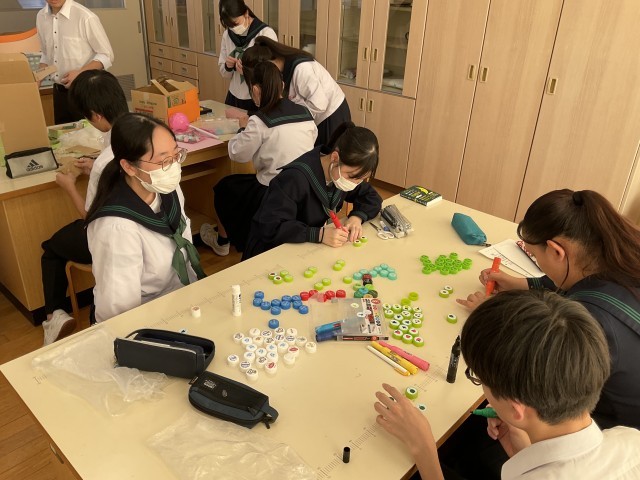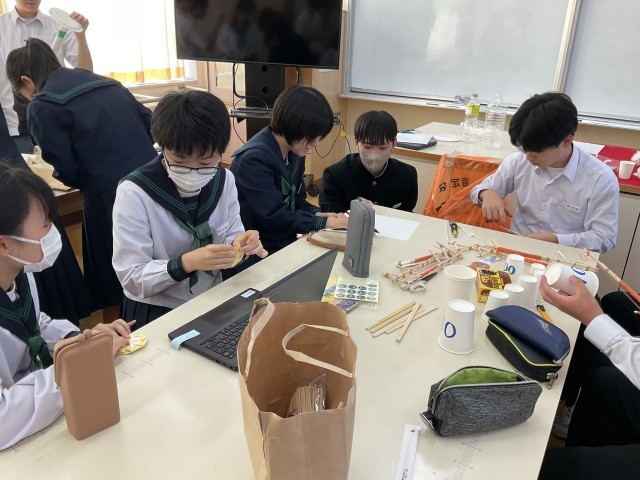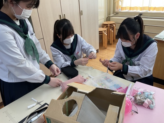 3年生の家庭科の授業の一環として、10月30日(木)に地域の保育園児を招待する「にこにこキッズパーティ」を開催します。授業では、園児たちに喜んでもらえるよう、心を込めて手作りのおもちゃづくりに取り組んでいます。子どもたちの年齢や興味を考えながら、布や紙、ペットボトルなど身近な素材を使って、安全で楽しいおもちゃを工夫して制作しています。グループごとにアイデアを出し合い、試作品を作って改良を重ねる様子はとても楽しそうでした。当日は、園児たちの笑顔と、3年生の達成感あふれる表情が校内に広がるとよいですね。地域とつながりながら、学びを深める取組を大切にしていきます。