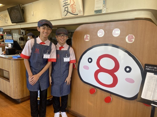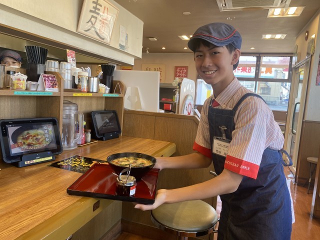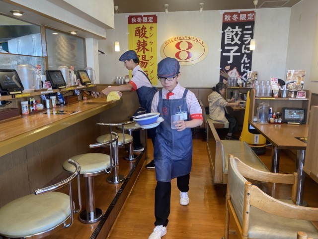 8番らーめんでは、接客、食事の配膳、飲食の後片付けを手際よく行っていました。制服姿がとっても似合っていました!