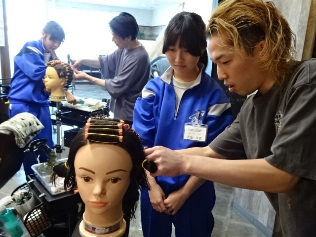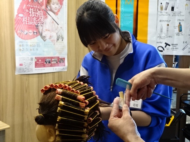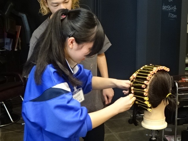 美容室しゃらくでは、ロットを巻く技術の練習をしていました。初めての経験でしたが、教えてもらいながらなんとか仕上げることができました。
