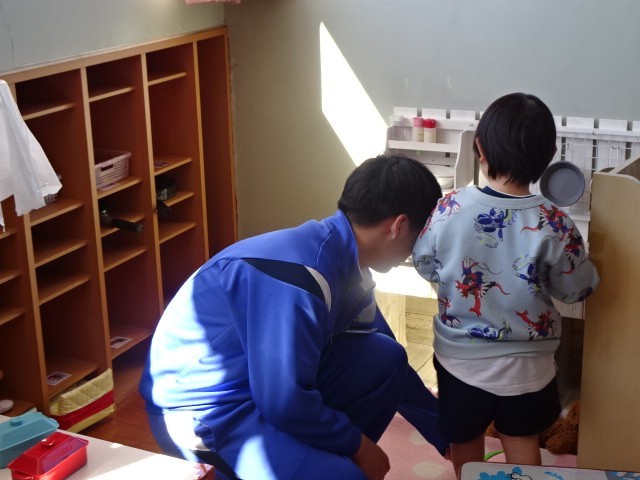 「社会に学ぶ『14歳の挑戦』」4日目(その2) 公開日 2025/10/30 更新日 2025/10/30 2学年 ローソン 高岡インター店ローソンでは、バックヤードで品出しや買い物かごをきれいにする作業をしていました。店頭以外のところでもいろんな仕事があることが分かったようです。立野保育所立野保育所では、お絵かき、折り紙、外遊びなどをしていました。「お兄ちゃん先生、お姉ちゃん先生」と呼ばれたことがとても嬉しかったようです。 +4