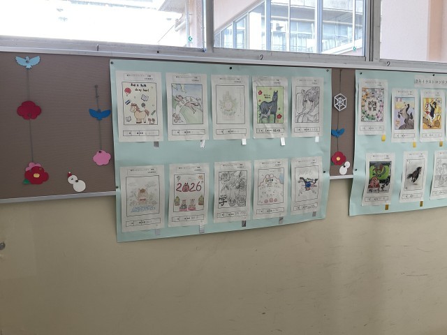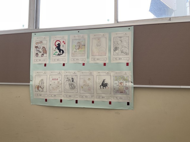 力作揃う!~新年イラストコンテスト~ 公開日 2026/01/16 更新日 2026/01/16 生徒会 文化委員会主催の「新年イラストコンテスト」の結果が発表されました。新年の抱負や意気込みを言葉とイラストで表すことで、決意を新たにしようという目的で実施しました。今年の干支である「馬」と「自分の抱負」を描いた力作が揃いました!
