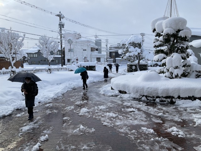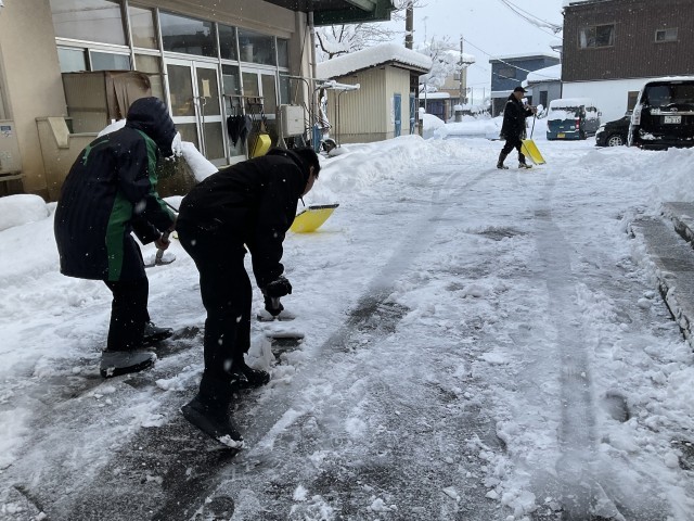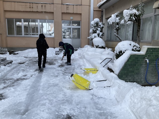 今朝の積雪により登校路や校地内に雪が残る中、登校してきた生徒が自主的にスコップを手に取り、除雪ボランティアとして作業を行ってくれました。生徒玄関前や給食物資の搬入口など、みんなが安全に歩けるようにと黙々と雪を運ぶ姿に、周囲の生徒や教職員も心が温まりました。寒い朝にもかかわらず、学校のため、仲間のために進んで行動してくれたことに感謝の気持ちでいっぱいです。本校の除雪作業は、すべてボランティアを募って行っています。協力してくれた皆さん、本当にありがとう。
