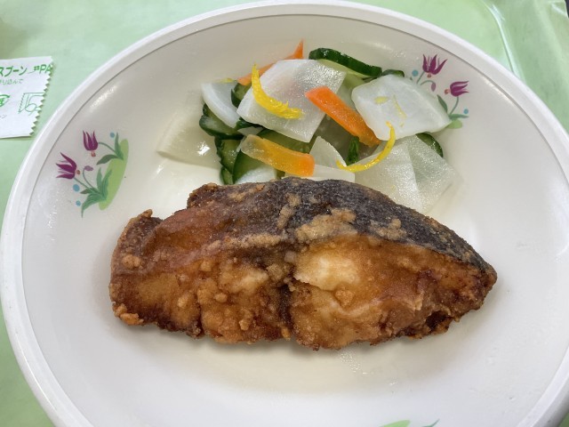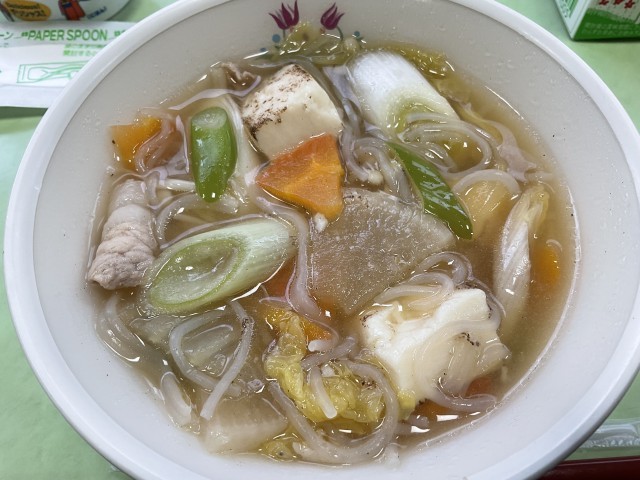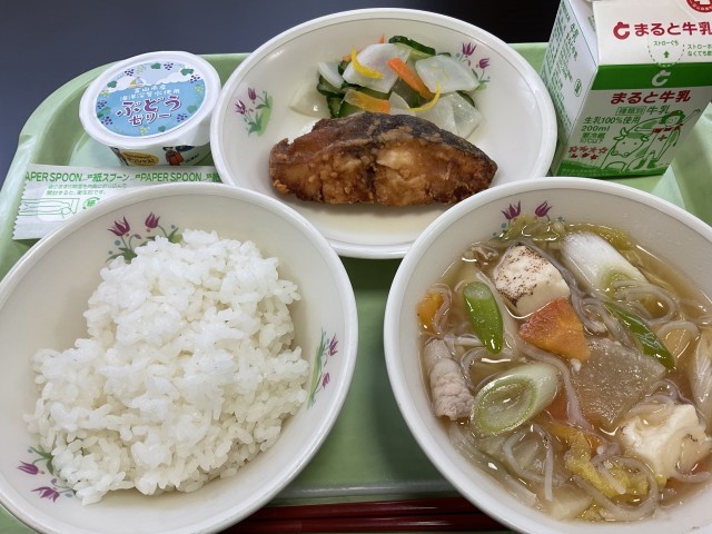 全国学校給食週間 5日目 公開日 2026/01/30 更新日 2026/01/30 お知らせ 今日の献立のテーマは、SDGsの目標15「陸の豊かさを守ろう」です。今日の近年富山湾で多くとれる「しいらの米粉揚げ」でした。カラッと揚がっていて、皮もおいしくいただきました。また「高岡市産みその冬野菜鍋」には、高岡で作られた大根、ねぎ、しらたき、みそが使われていました。ほっこりやさしいお味でした。 しいらの米粉揚げ かぶの柚子サラダ 高岡産みその冬野菜鍋 海洋深層水ゼリー ご飯 牛乳