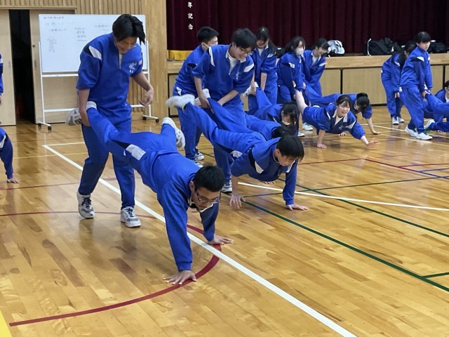 若鷹's Boot Camp 2日目 公開日 2026/03/19 更新日 2026/03/19 生徒会 昨日に引き続き、若鷹's Boot Camp(合同トレーニング)を行いました。陸上部エキスパートコーチの北浦さんから、体幹トレーニングやストレッチの方法を教えてもらった後は、各部が実施しているトレーニング方法を紹介し合いました。 【本日参加の部】 野球部 バレーボール部 吹奏楽部 卓球部 +2