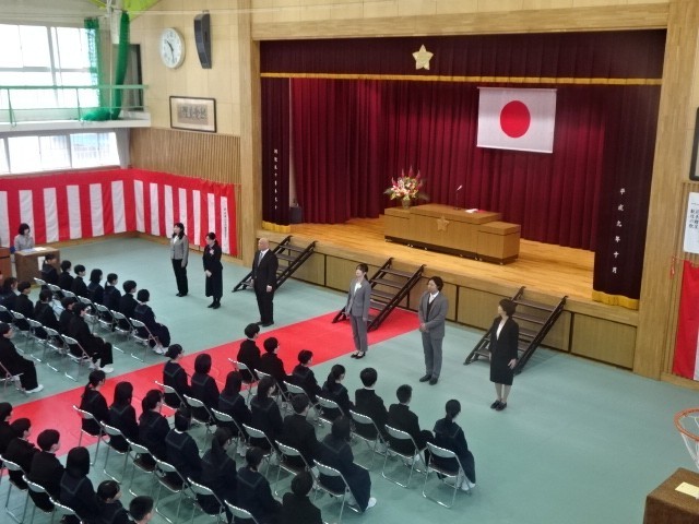 入学式 公開日 2026/04/09 更新日 2026/04/09 お知らせ 入学式が行われました。「日々の努力を惜しまず、自分自身を成長させていくことを大切にしたい。仲間と支えあいながら、一つ一つのことに全力で取り組んでいきたい」と新入生代表が誓いの言葉を述べました。対面式では、在校生による歓迎の歌が披露されました。