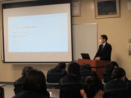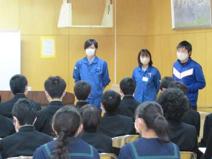株式会社インテック、株式会社富山村田製作所より講師をお招きし、講演をお聴きしました。講師の先生方には現在の仕事の内容や仕事を選んだ理由ややりがいについてお話いただきました。とてもわかりやすくお話しいただき、生徒たちも興味津々の様子。講師の先生方、本当にありがとうございました。