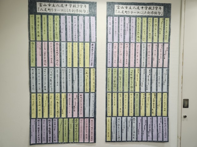 第30回富山県中学校文化祭・その7 公開日 2025/10/08 更新日 2025/10/08 第30回富山県中学校文化祭R7.10.5 【放送部門、特別展示部門】第42回NHK全国放送コンテスト出品作品が放映されていました。(写真:1枚目)特別展示部門では、家庭科作品や創作俳句、新聞等の作品が展示されていました。(写真:2~6枚目) +3