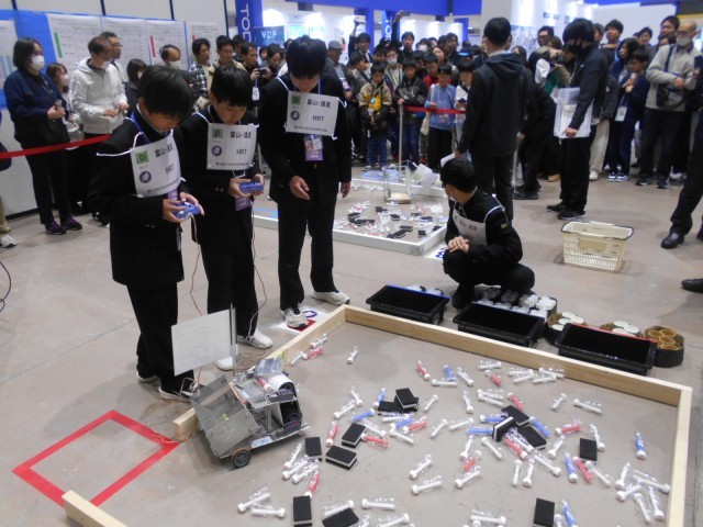 11/1(土)に富山産業展示館(テクノホール)でT-Messe富山県ものづくり総合見本市内で第22回富山県中学校ロボットコンテストを開催しました。県内18チームが参加し、熱戦を繰り広げました。