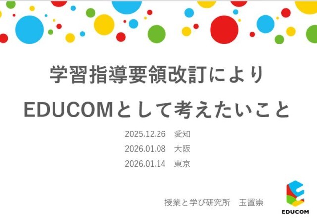 EDUCOMの芳賀さんと岐阜羽島駅へ移動。そこから新大阪駅へ。徒歩でEDUCOM関西支社へ向かう。15時から16時30分までEDUCOM社員対象の学習会。僕は基調提案30分。タイトルは「学習指導要領改訂によりEDUCOMとして考えたいこと」。残り60分は二つのグループに分かれて参加者同士での話し合い。疑問がたくさん出されたことが大きな収穫。