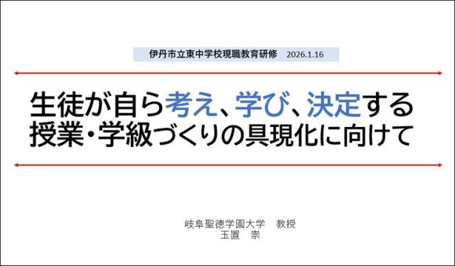 1年生理科、2年生美術の授業参観。二つの授業も、玉置定義の「薄っぺらの授業」の真逆の授業。単元を通して育てたい子ども像をしっかり持っておられて、それが随所に感じられるとても良い授業。指導助言の場で共有したいことがたくさん。