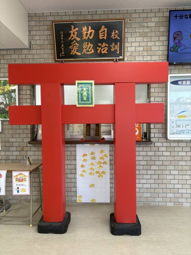 10時過ぎに大学を出て、岐阜羽島駅へ向かう。10時58分に乗車。新大阪、北伊丹駅へ。迎えの車で伊丹市立東中学校へ到着。学校玄関でビックリ。写真のように「天満宮」と書かれた赤の鳥居と、とても凝った掲示板。校長先生に伺うと、学校運営協議会の皆さんが自作され、設置されたとのこと。鳥居には生徒が自分の思いを書いて貼り付けることができるようにされていて、心憎い演出。土曜日には運営協議会の方が学生ボランティアを募集して、学習会運営もされておられるとのこと。学校は一切ノータッチというのだから凄い!運営協議会の方は、僕が訪問する際には必ず授業参観をされ、僕の講演まで必ずお聞きいただいている。学校のことを少しでも知り、学校を応援したいという思いがよく伝わってくる。教職員も生徒も期待に応えようとする気持ちになることは確か。このような学校があるなんて。地域とのつながりに苦労されている学校が多い中、羨ましい学校と地域とのつながり。