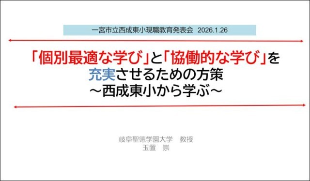 14時55分から16時10分まで講演。演題は「『個別最適な学び』と『協働的な学び』を充実させるための方策~西成東小から学ぶ~」。他校の先生方も参加されておられることを踏まえて、個別最適な学びと協働的な学びの意義、次期学習指導要領における位置づけ、特に多様性の包摂について解説し、今後、学校が重要視したい事柄を提示。算数授業動画をもとに全体で共有したい事柄を伝える。概念形成において大切なことを伝えて、ちょうど時間。