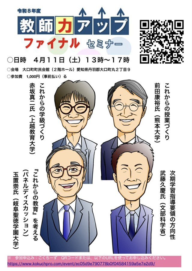 皆様、教師力アップファイナルセミナーが近づいてきました。ぜひご参加ください。