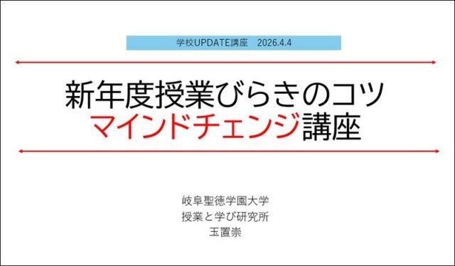 20時から21時30分まで学校UPDATE講座で講師。新年度最初の講座での講師に選んでいただいたのは光栄。いただいた演題は「新年度授業びらきのコツ マインドチェンジ講座」。参加される方々を想像して、話題を「マインドチェンジ」に絞って講演。参加者にマインドチェンジを促すための様々な資料や動画を提示しながらの50分間の話。皆さんにブレイクアウトルームで20分間ほど話し合ってもらい、感想や質問をいただく。土曜日20時から90分間学ぼうという皆さん。野口芳宏先生曰く、一流の聴き手の皆さん。その方々に話せる幸せを感じながらの90分間。